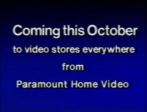 Audio: A male announcer (Nick Tate) says "Paramount Pictures, the best show in town!" In the background, the same music from the 5th Paramount Home Video logo (albeit abridged) is heard.