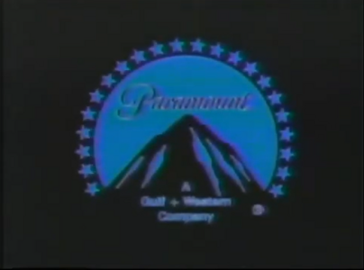 Visuals: Over a black background is the abstract mountain logo, with "Paramount" in black script in a light blue circle like the other Paramount logos, and the "A Gulf + Western Company" byline at the bottom in light blue. It begins to zoom in, as the stars (which are followed by light trail-streaks) and byline zoom past, and both the mountain and circle grow bigger until the camera is literally right on top of the peak of the mountain, with "Paramount" centering in, filling the middle of the screen. When the peak hits the bottom and "Paramount" fits the center, "Paramount" begins to shine. A very bright flash follows, and it dies down to reveal the Paramount script logo in blue and a small "VIDEO" shining a bit between two blue lines.